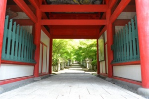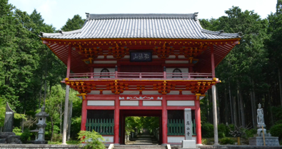 そんな道を5分ほど歩いたところで左に曲がると、いきなり立派な朱塗りの山門が目に入ります。この時の感想を一言でいうと「唐突」です。なんの前振りもなく、いきなりドーンと目の前に現れるので、それまでののどかな風景との対比もあり、びっくりというか、まさに「唐突…」という印象です。