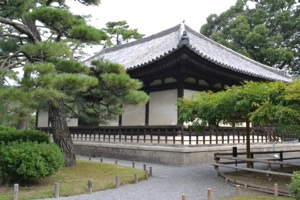 拝観受付を済ませて境内に入ると、綺麗に手入れされた参道、左手側に「扇の芝」と呼ばれる庭園、その奥に観音堂があります。
