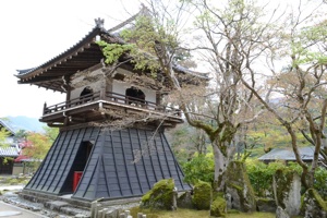 その山門をくぐるとすぐに立派な袴腰の鐘楼があります。そしてその向かいには本堂である方丈があります。